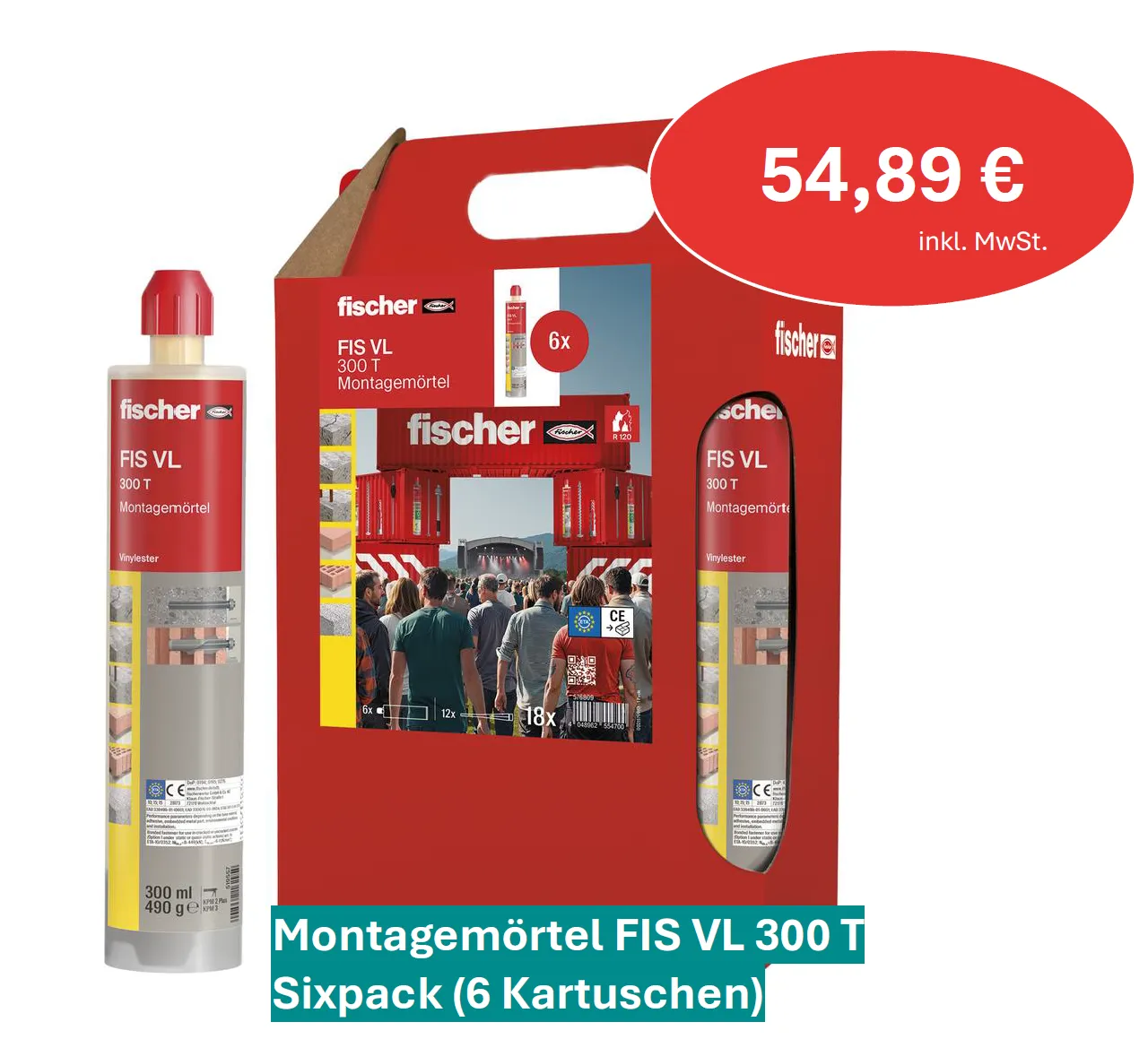 - 6 Kartuschen Montagemörtel FIS VL 300 T im handlichen Sixpack