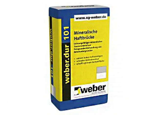 Leistungsfähiger mineralischer Trockenmörtel zur Putzgrundvorbehandlung von Betonuntergründen - weber.dur 101 ist eine mineralische Haftbrücke für außen und innen zur Putzgrundvorbehandlung von Betonuntergründen. Er ist auch geeignet zur Herstellung einer gefilzten Oberfläche auf Beton.