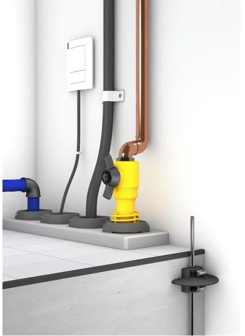 Wassersperrflansch zum druckwasserdichten Einbinden von Erdungsleitern in Bodenplatten oder Betonwände.