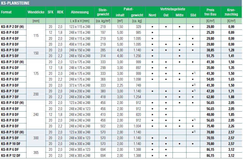KS Planstein Loch 8 DF 248x240x248* KSR P 12/1,4 2,0 qm/PAL Mörtelbedarf 3,6kg/qm